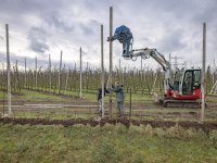 19-01-2026 - Op het fruitteeltbedrijf van maatschap Giesen in het Gelderse Angeren worden deze weken palen geplaatst voor een hagelnetconstructie boven maar liefst 15 hectare appels en peren. De...