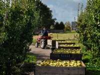 22-09-2025 - Fruitteler Twan ter Hofstede van Firma J. en F. ter Hofstede in het Noord-Hollandse Wijdenes is goed gehumeurd, ondanks alle drukte en de hevige buien. De sfeer zit er bij het team ook goed...